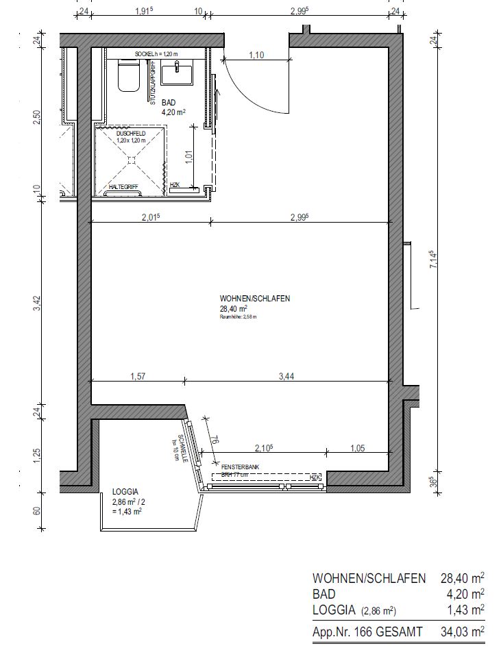Zimmer Haus A 166 mit 34,03 m² - siehe auch das entsprechende Bild: